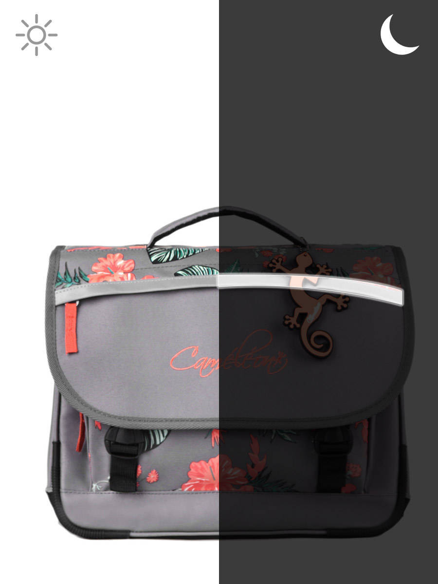 35 cm - 8 liter - 0.82 kg ~ Deze boekentas komt uit de Basic collectie van het merk Caméléon. Met een breedte van 35 cm is dit model ideaal voor de kleuterklas en het eerste leerjaar! Dit model bestaat uit twee opbergvakken, die een schriftje (24x32 cm) en andere kleine spulletjes kunnen bevatten. Daarnaast beschikt dit model ook over een ruim voorvak met rits, en een plat opbergvakje in de overslagflap vooraan. Aan de binnenkant is er ook een langwerpig opbergvak voor een meetlat voorzien. Uw kleine spruit zal geen problemen hebben om de boekentas te openen en sluiten, dankzij het veilige kliksysteem en de soepele ritsen. Voor optimaal comfort zijn de rugzijde en schouderbandjes extra verstevigd. Deze schooltas is ook voorzien van reflectoren, zodat uw kind zich veilig in het verkeer kan begeven.