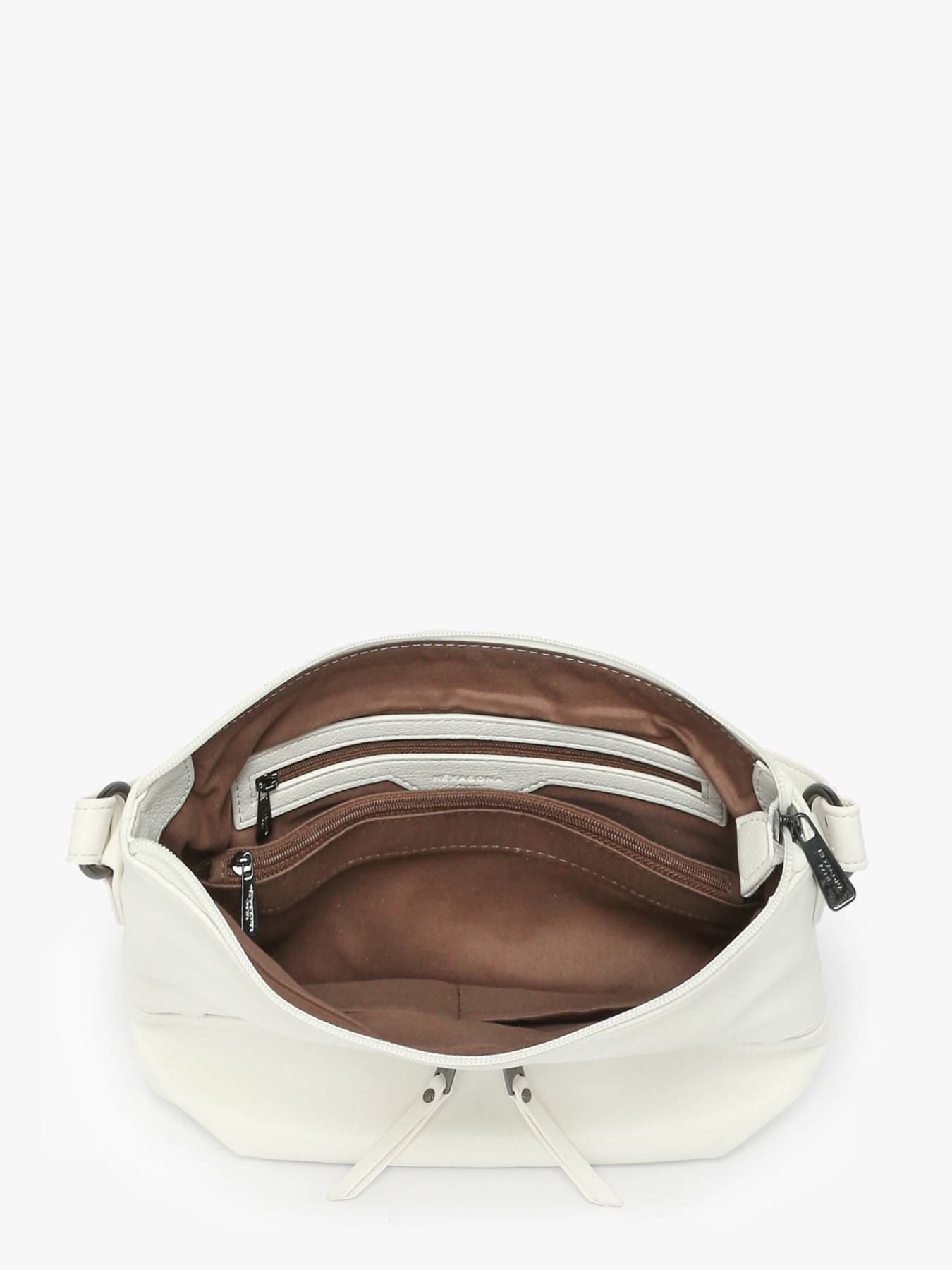 Deze stijlvolle cross body tas is beschikbaar in de Gracieuse collectie van Hexagona. Modern en praktisch, het ideale model voor een goed gevulde dag. Het interieur is opgedeeld in twee vakken gescheiden door een ritsvak. Praktisch ook om uw kleinere spulletjes steeds bij de hand te hebben, dankzij de twee externe ritsvakjes.