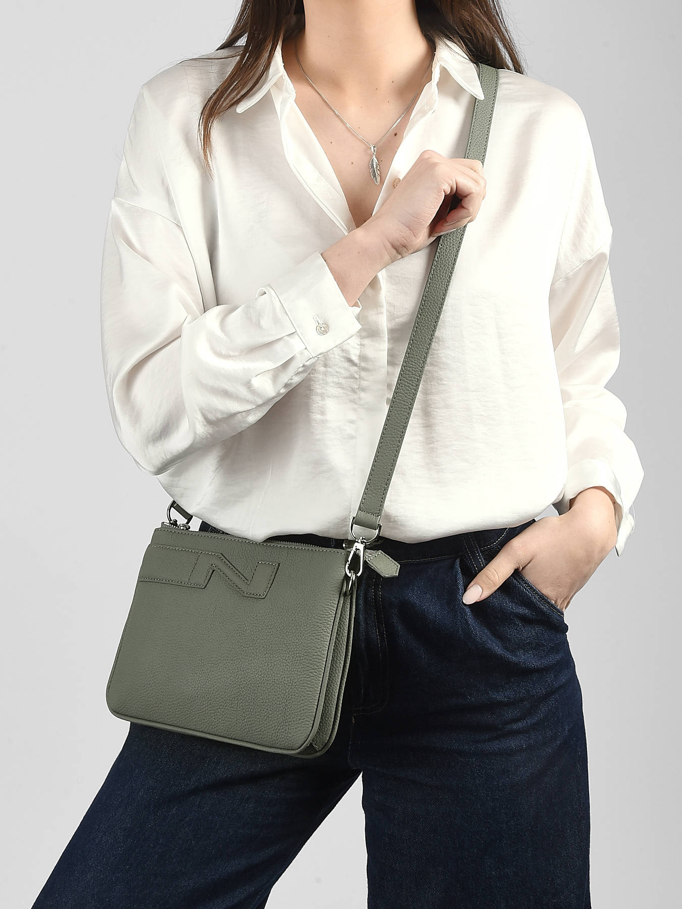 • Cross Body Tas City Perle Leder Nathan baume Groen n city N1811000
