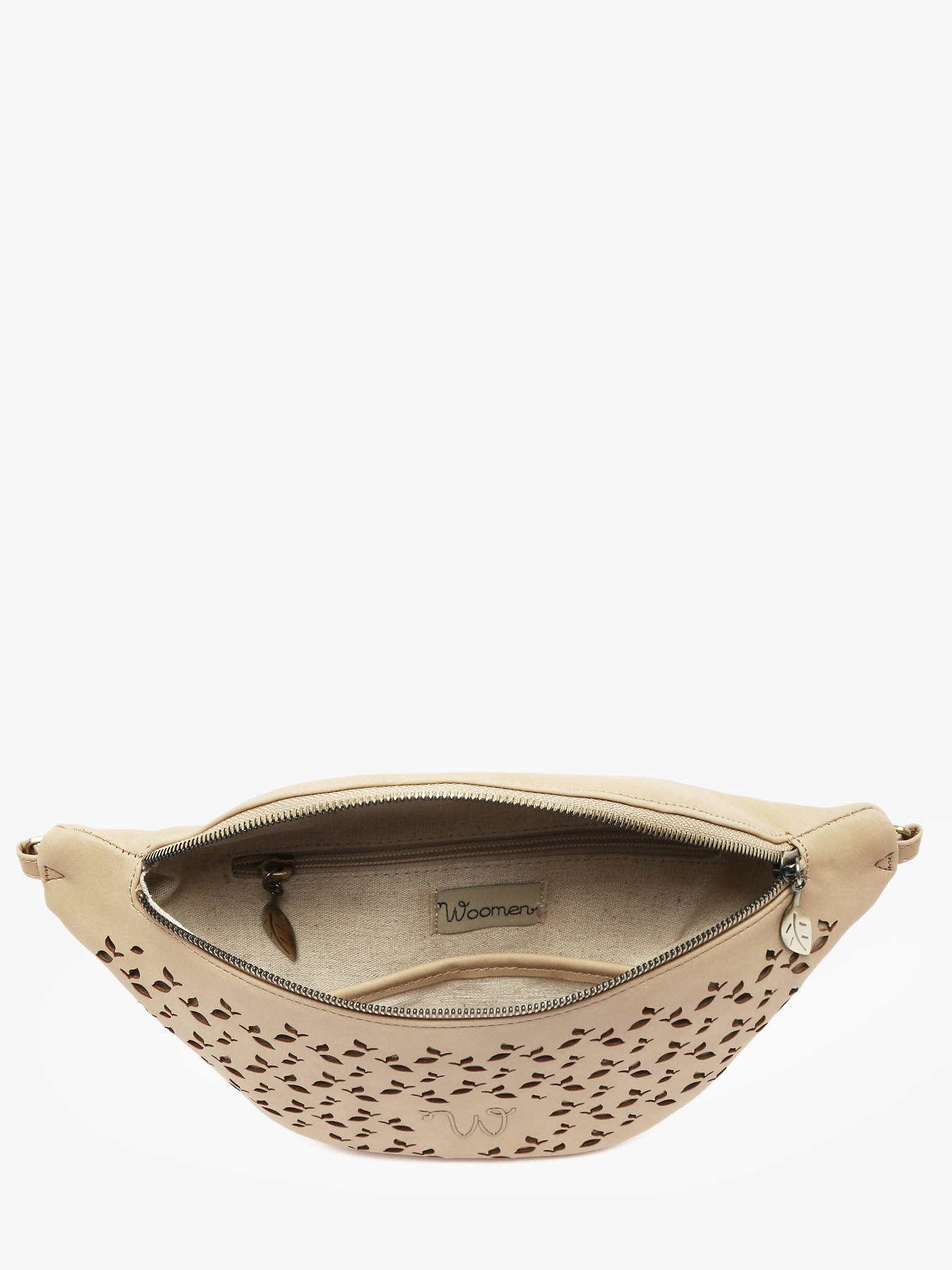 De heuptas WOOMEN uit de lijn Zamia combineert stijl, praktisch gebruik en duurzame betrokkenheid. Het hoofdmateriaal van polyurethaan, bestaande uit 58% gerecyclede materialen en gevoerd met katoen en linnen, biedt lichtheid en stevigheid. Het materiaal met opengewerkte kleine blaadjes geeft het model originaliteit en raffinement. Compact en praktisch, beschikt deze heuptas binnenin over een ritsvak en een steekvak om je essentials eenvoudig te organiseren. Versierd met het gouden resinelogo, is het een elegant en functioneel accessoire, perfect voor je dagelijkse outfits.