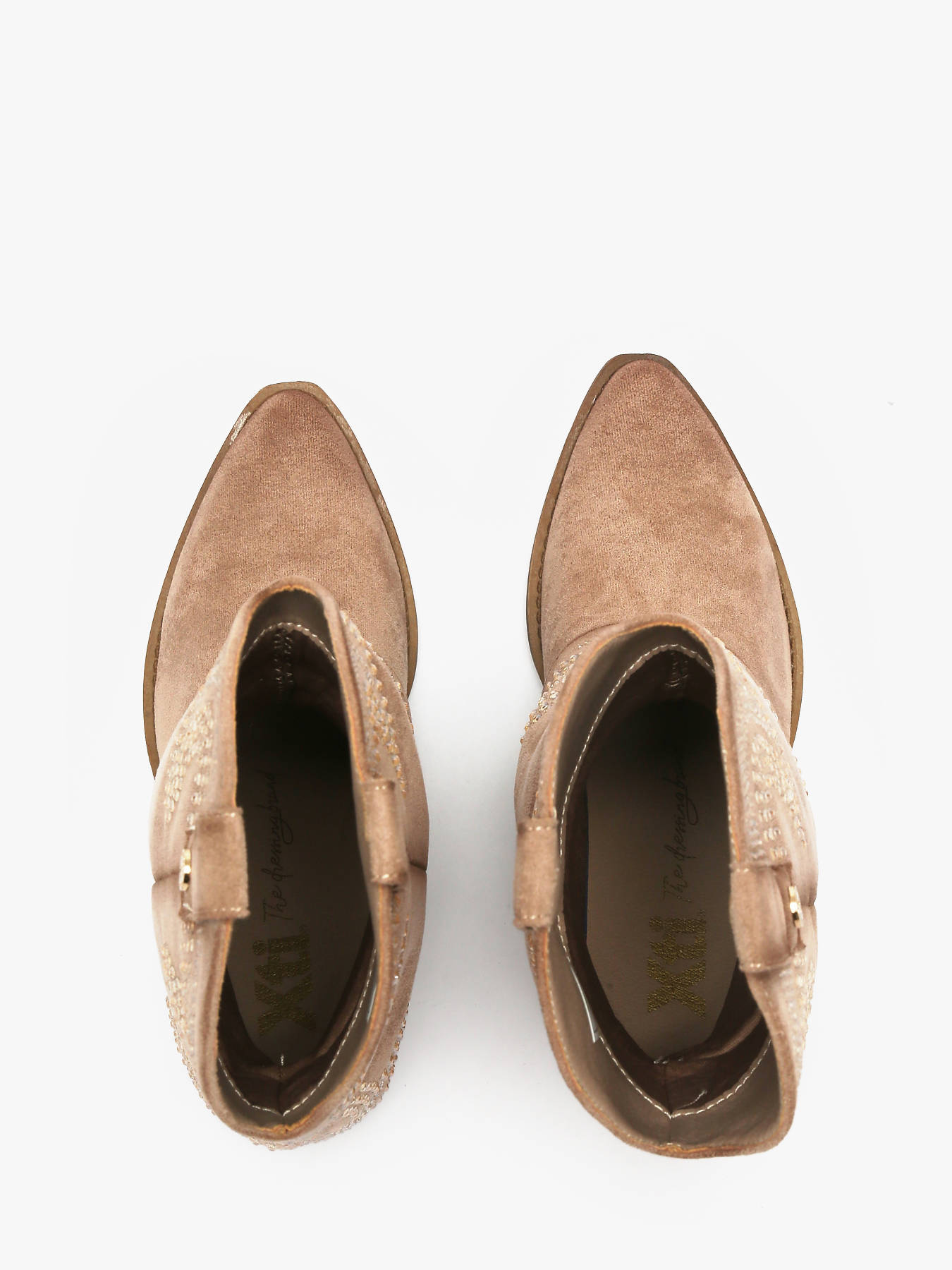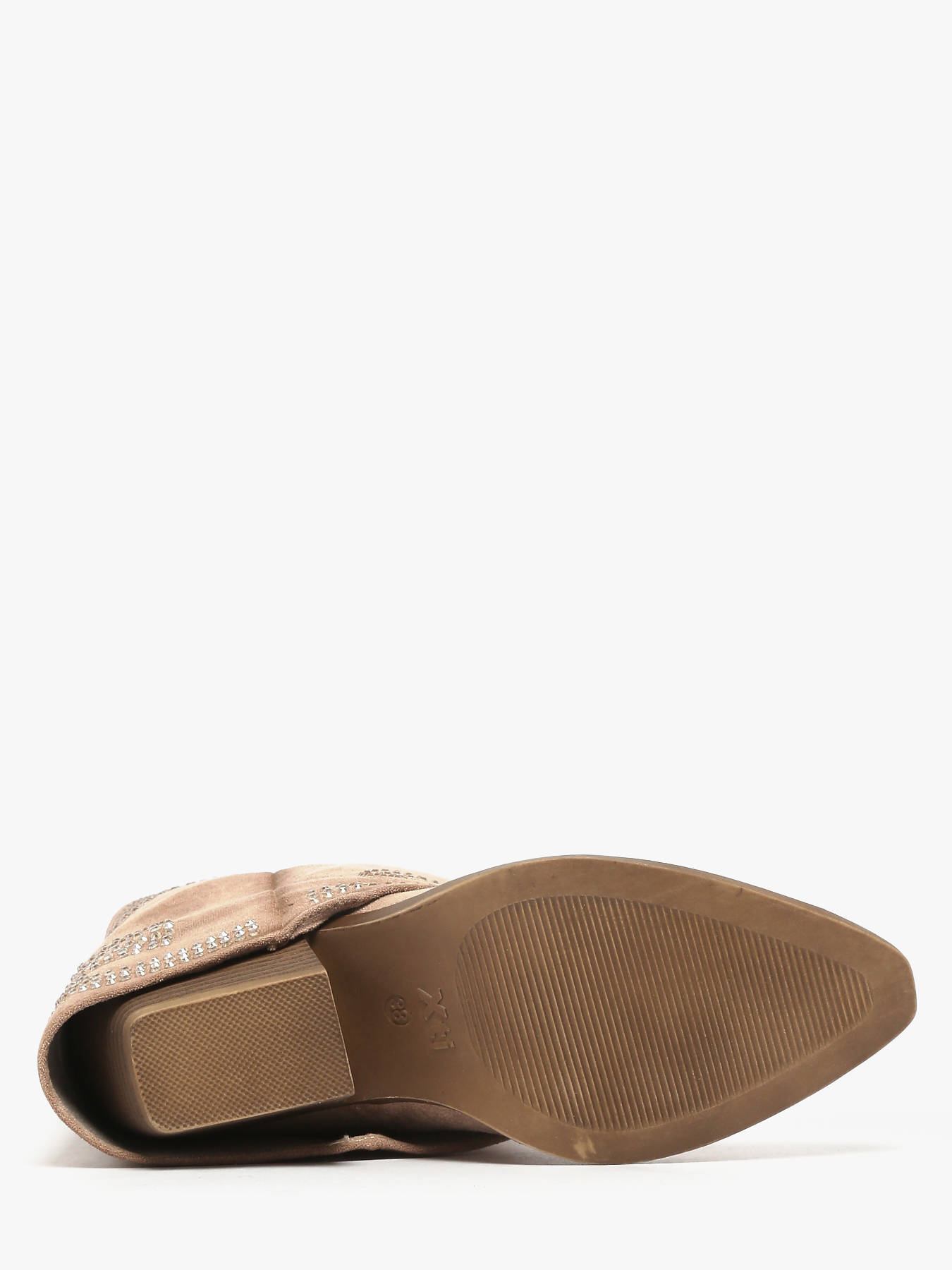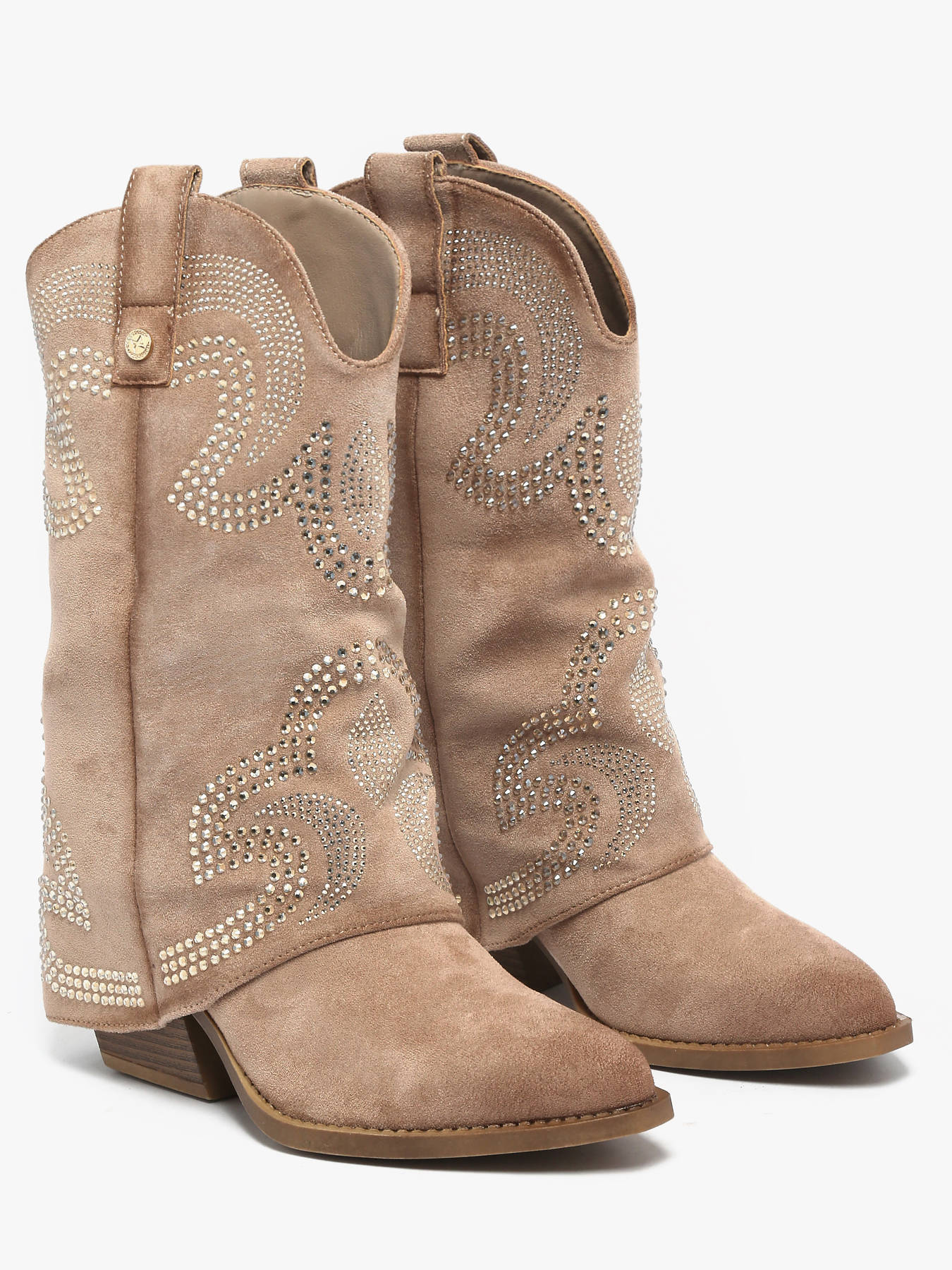 Ontdek de herinterpretatie van de santiag door XTI met deze damesschoen, verkrijgbaar in camel of beige. Gemaakt van zacht suédine, valt ze op door het unieke ontwerp met een elegante omslag en subtiele strass-steentjes, voor een lichte en verfijnde vleugje. De Western-geïnspireerde zool geeft een gedurfde en trendy uitstraling, terwijl de 7 cm hak de benen verlengt zonder comfort te verliezen. Perfect om een urban of meer geklede outfit te upgraden, biedt de schoen stabiliteit dankzij de antislipzool en beschikt ze over een uitneembare binnenzool. Een moderne santiag, ideaal om een uitgesproken en modieuze stijl te tonen.