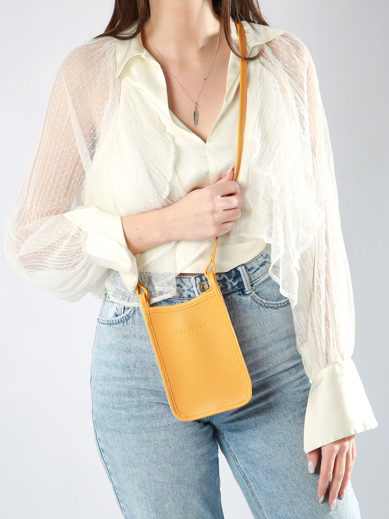 Het telefoonetui Le Foulonné van Longchamp is zowel functioneel als elegant. Met zijn 110 cm lange schouderriem volgt hij uw bewegingen met natuurlijke soepelheid. Het slanke en verfijnde design doet denken aan een ritsetui, terwijl het ruime interieur twee vakken biedt voor uw kredietkaarten. LE FOULONNÉ, de iconische en onmisbare lijn van Maison Longchamp, onderscheidt zich door zijn karakteristieke leernerf. De collectie biedt sobere en tijdloze modellen die met elegantie de tand des tijds doorstaan. Al meer dan 40 jaar weet deze lijn zich telkens opnieuw uit te vinden, terwijl ze haar essentie en authenticiteit behoudt.
